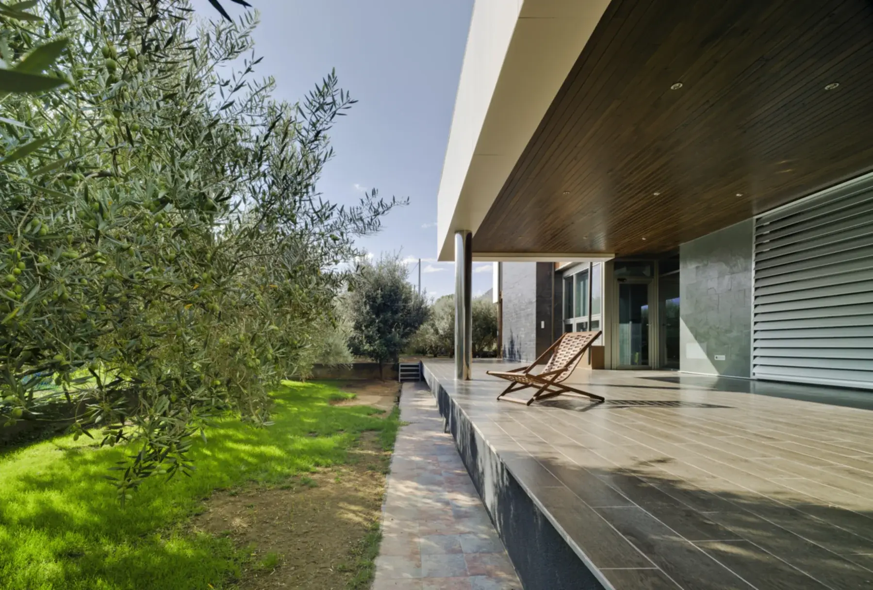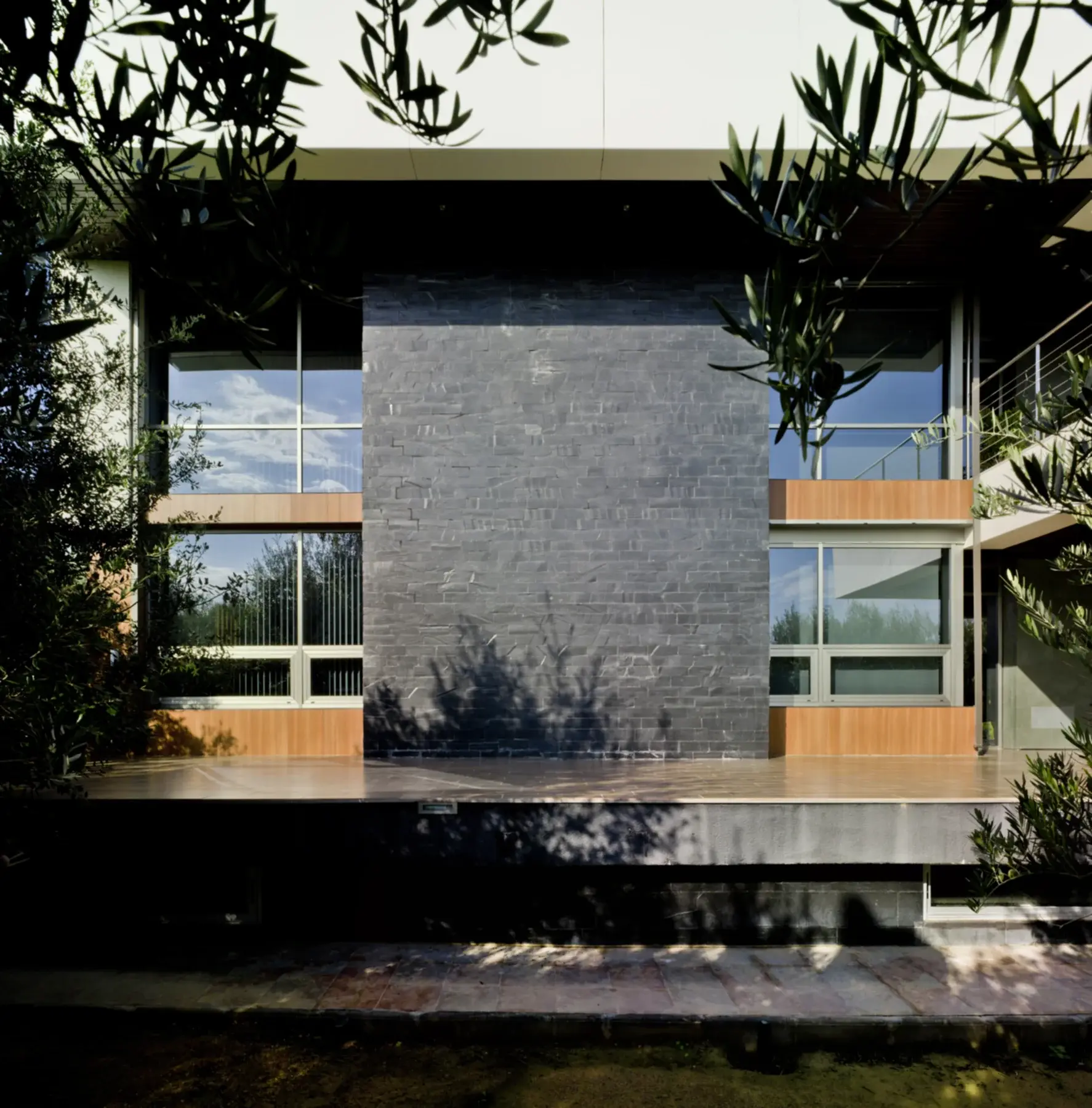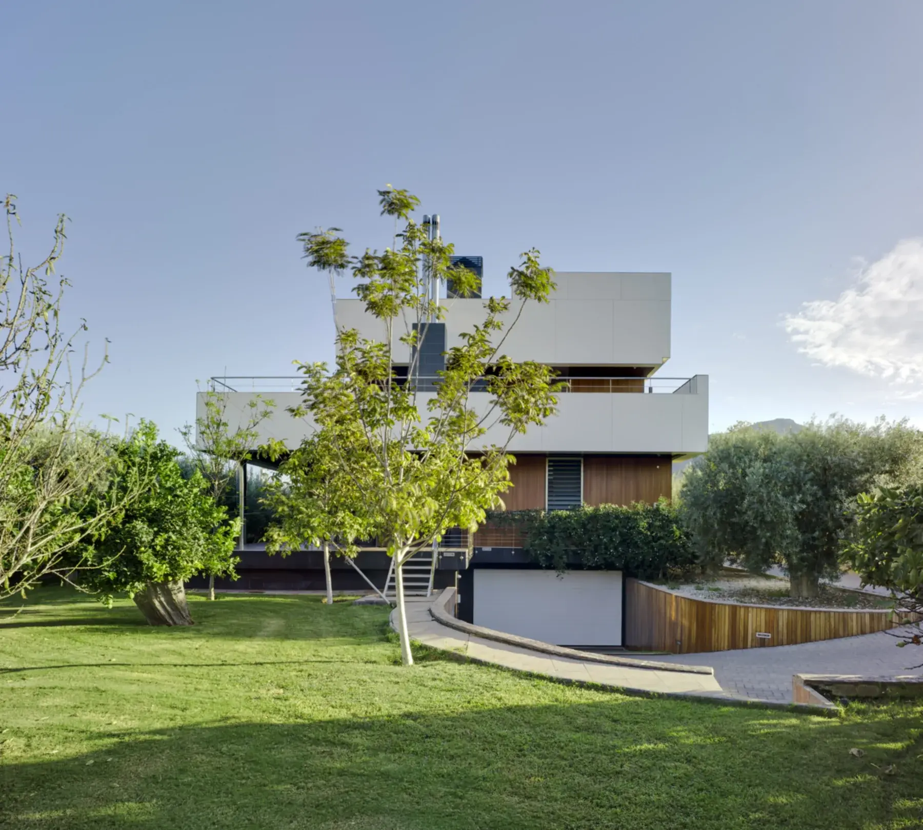 La arquitectura, de líneas limpias y materiales nobles, se adapta al terreno y dialoga con el paisaje. El resultado es una casa silenciosa y luminosa, donde la piedra, la vegetación y la luz se entrelazan para crear un hogar pensado para habitar en calma.