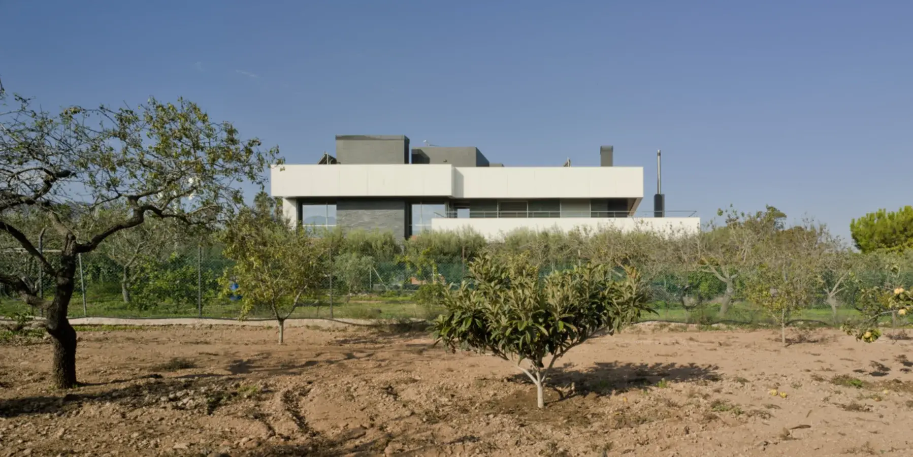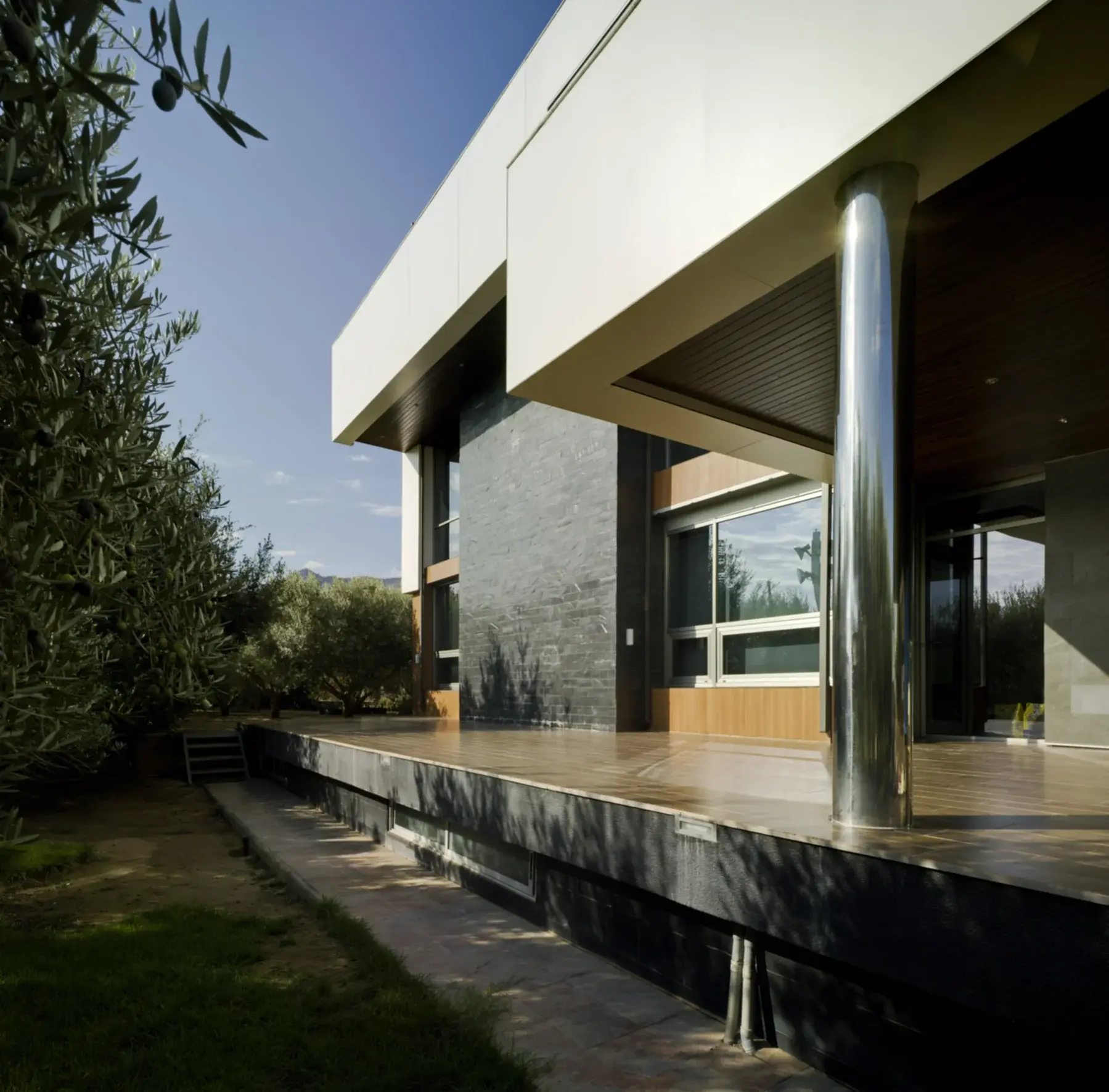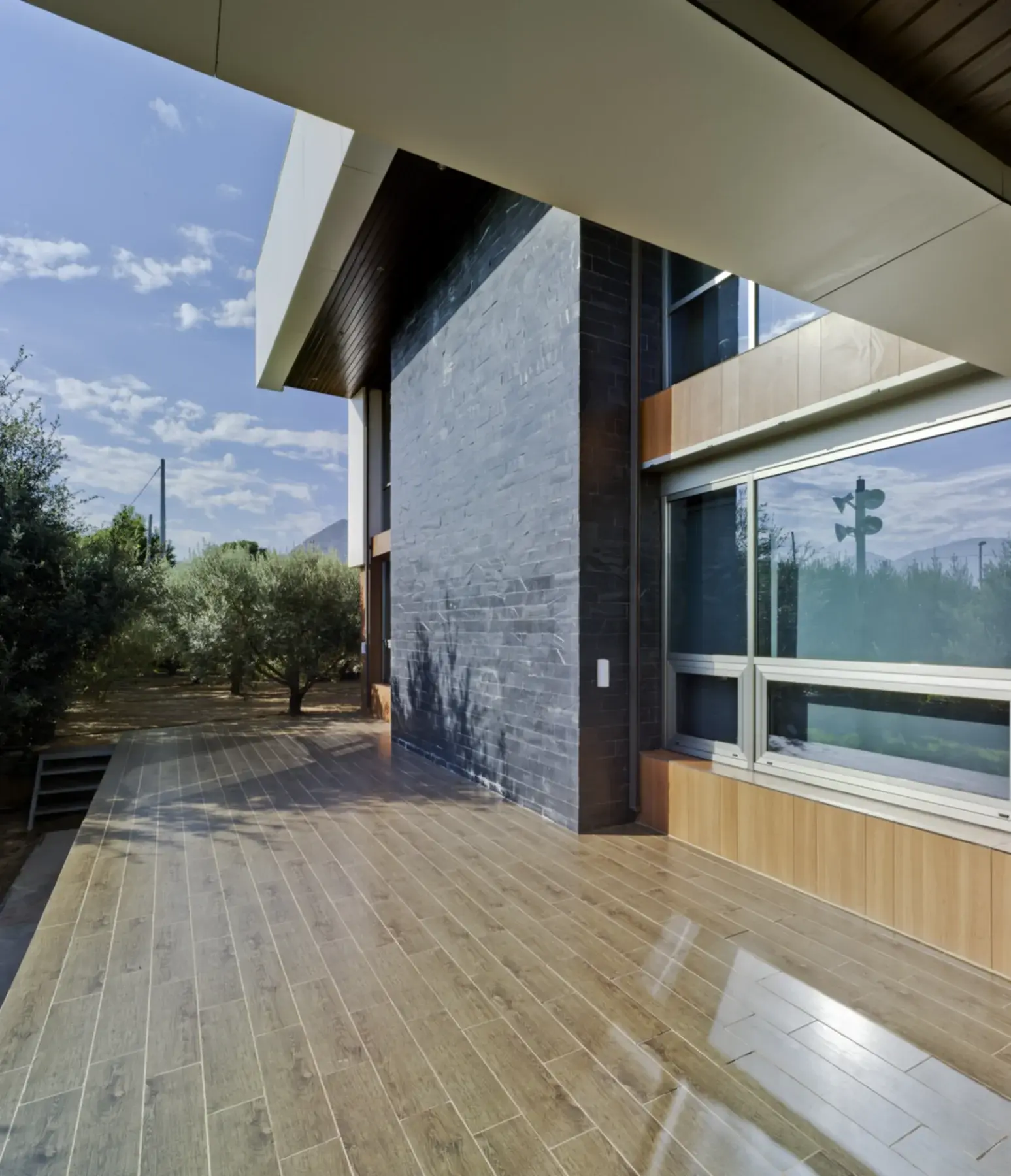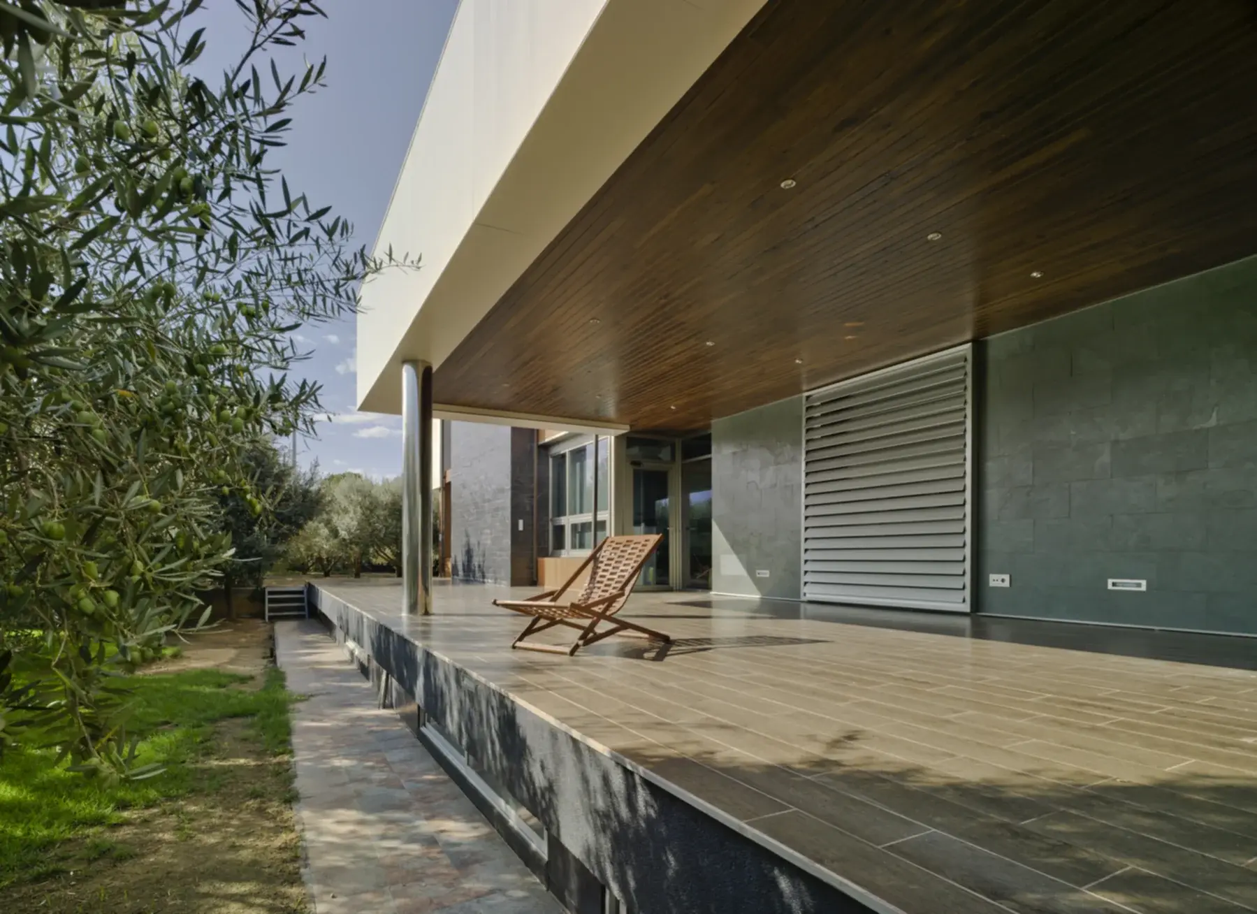 La arquitectura, de líneas limpias y materiales nobles, se adapta al terreno y dialoga con el paisaje. El resultado es una casa silenciosa y luminosa, donde la piedra, la vegetación y la luz se entrelazan para crear un hogar pensado para habitar en calma.