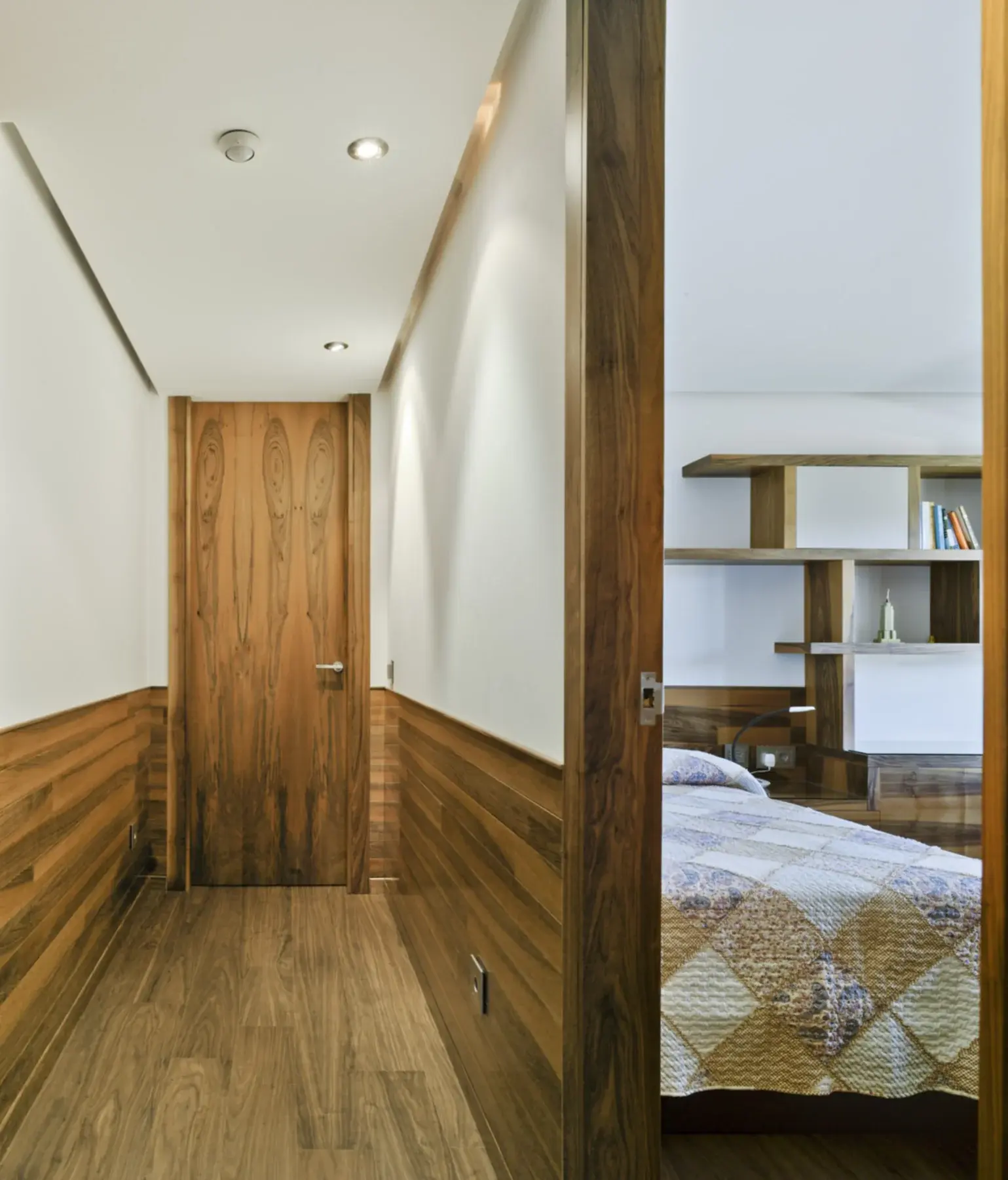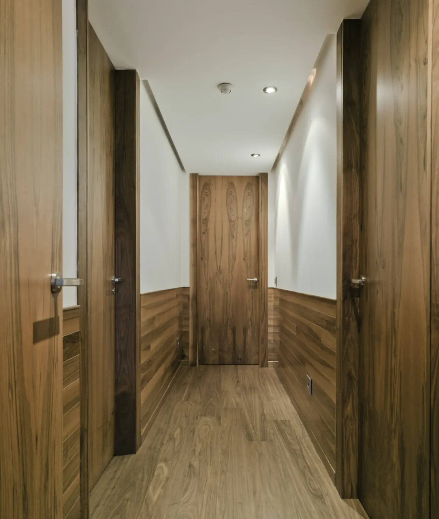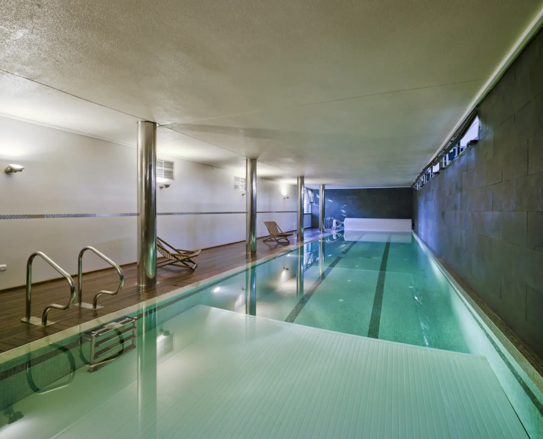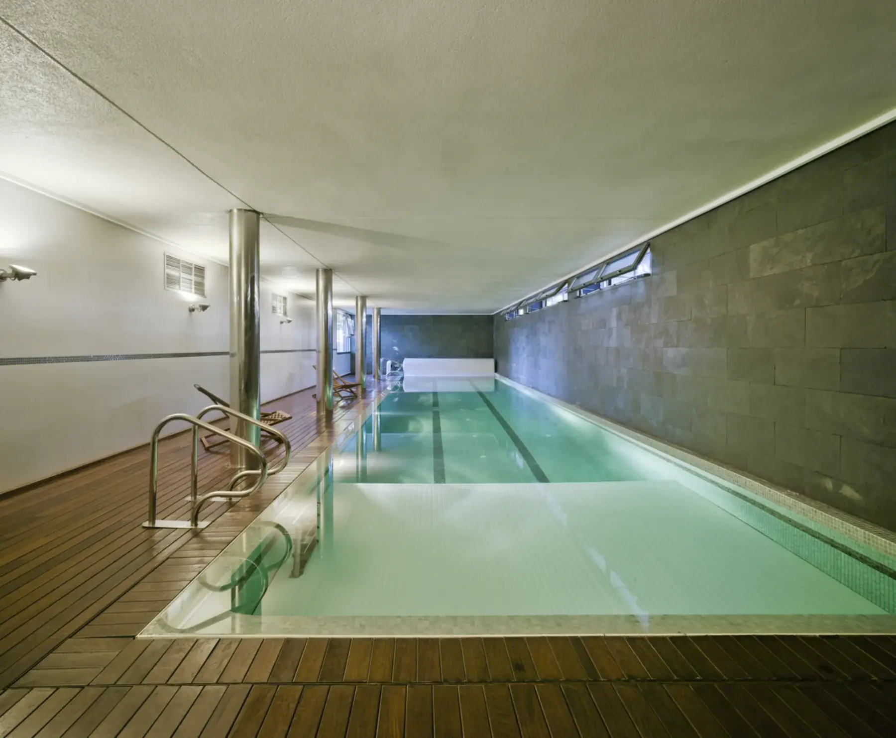 En el semisótano, más allá del garaje y los cuartos técnicos, emerge una zona de bienestar: una piscina interior y jacuzzi transforman este nivel en un lugar íntimo y reservado para el descanso y el cuidado.